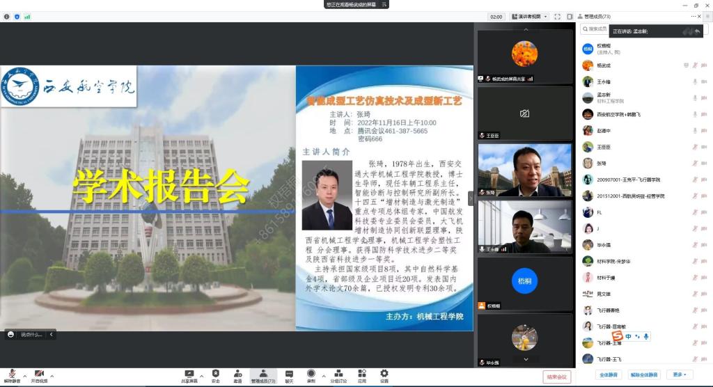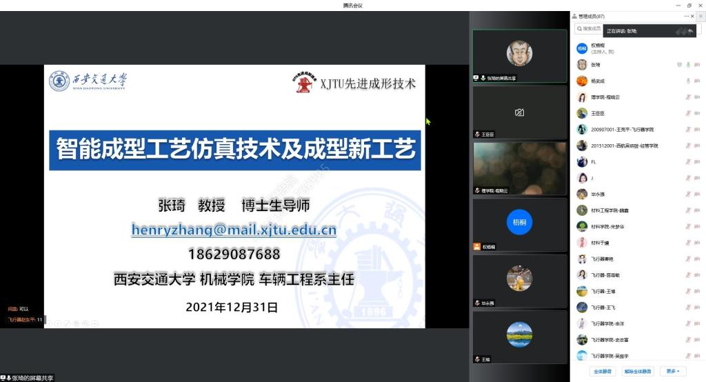 为进一步提升教师科研能力,了解机械学科前沿发展趋势,11月16日上午,开云kaiyun官方网站特邀西安交通大学张琦教授以腾讯会议线上形式为开云师生做题目为《智能成型工艺仿真技术及成型新工艺》的学术报告。开云kaiyun官方网站杨武成副院长主持会议,王永锋院长致欢迎词,开云kaiyun官方网站教师及其他学院百余名教师在线参加了学术报告会议。