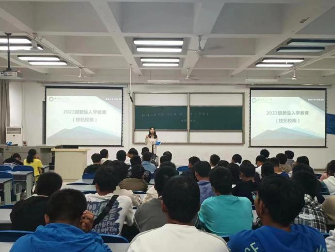 为树立新生的纪律意识及制度意识,遵守校纪校规。9月19日,学生工作办公室主任王嘉雨老师与2023级新生辅导员苟颖老师先后于第二阶梯教室为同学们讲解了校规校纪的主要内容,全体新生到场参加。