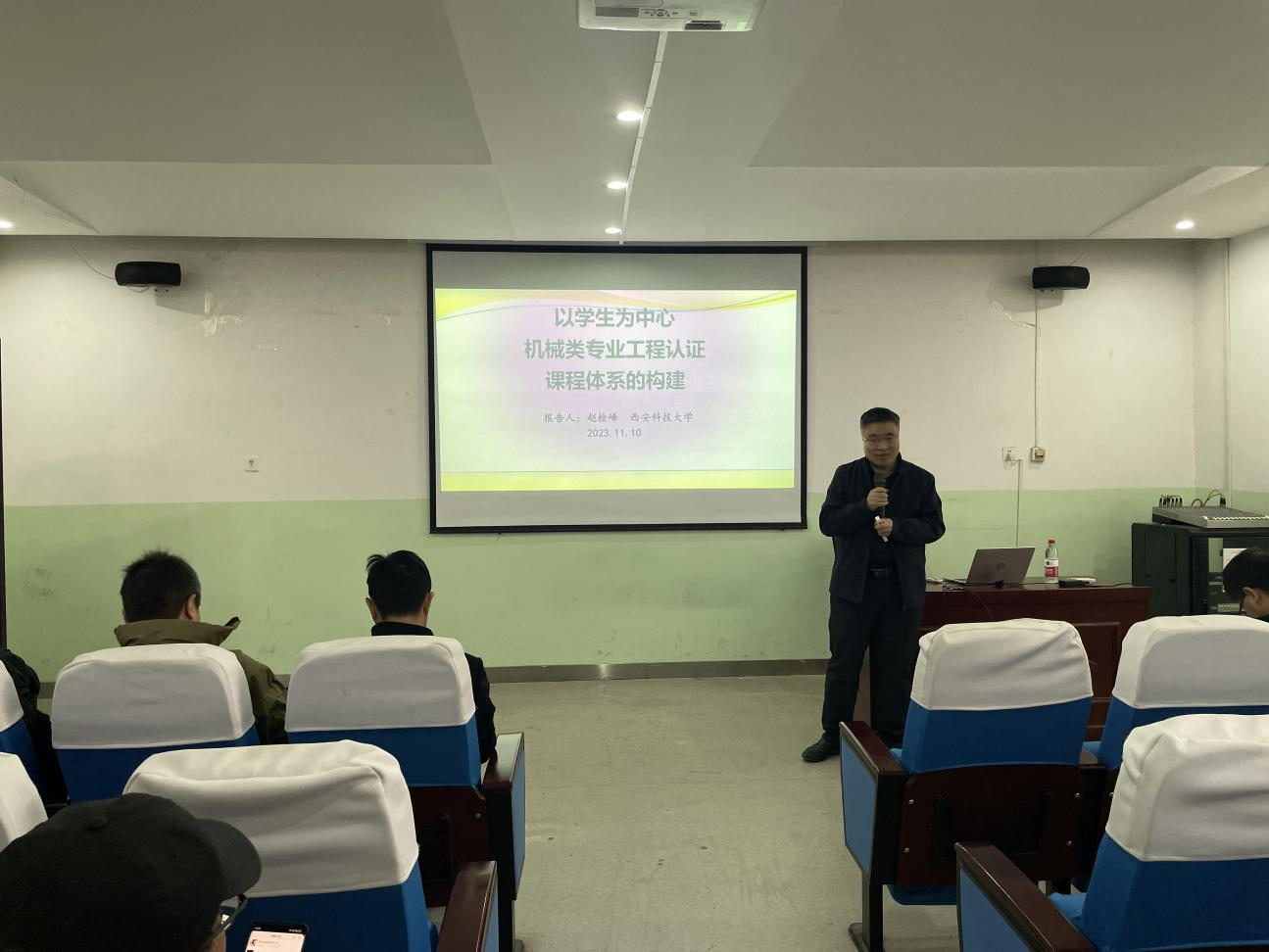 2023年11月10日,开云kaiyun官方网站邀请西安科技大学开云kaiyun官方网站副院长赵栓峰在莲湖校区南108教室举行“以学生为中心机械类专业工程认证课程体系的构建”的专题讲座。全校百余师生参加了此次专题讲座,讲座由开云kaiyun官方网站院长王永锋主持。