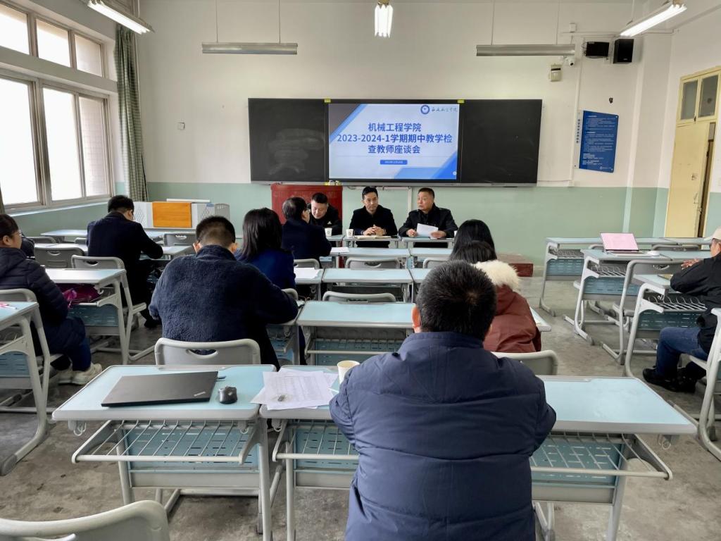 11月16日上午,开云kaiyun官方网站于莲湖校区召开2023-2024-1学期期中教学检查座谈会,学院特邀校级督导雒新峰出席,学院领导班子、教师代表参加,会议由教学副院长李懿主持。