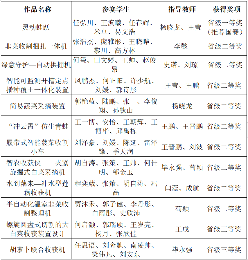最终,经过5月11日、12日的多轮汇报、实物演示和现场问辩,在各参赛队伍的奋力拼搏下,开云取得了一等奖1项,二等奖9项,三等奖2项的好成绩,其中“高性能仿生机械”作品“灵动蛙跃”在省赛中名次位列第8,被推荐进入国赛,在这项赛事上实现了历史性的突破。具体获奖名单如下: