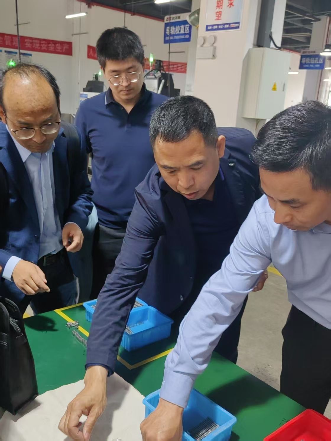 在达沃鑫智能装备有限公司,王永锋一行参观了制造车间,产品展示中心,对企业的生产流程和技术应用有了更直观的认识。之后,与企业技术骨干召开了技术交流会,会议上,王永锋表示学院在智能控制算法、工业机器人应用等关键领域具备显著的技术优势。后续,学院将安排专业教师与企业技术人员进行一对一的对接,通过开展联合科研项目的方式,帮助企业优化现有生产线,提升其柔性化生产能力。会议还对企业实际生产过程中所面临的应用瓶颈展开了深入探讨,并对筹建校企联合研发中心等议题进行了深入交流。