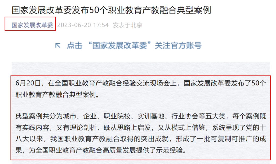 6月20日,国家发展改革委发布了50个职业教育产教融合典型案例,beat365“构建‘1+3+N’产教融合模式 深耕先进装备制造业 培育忠诚工匠 ”作为典型案例入选。