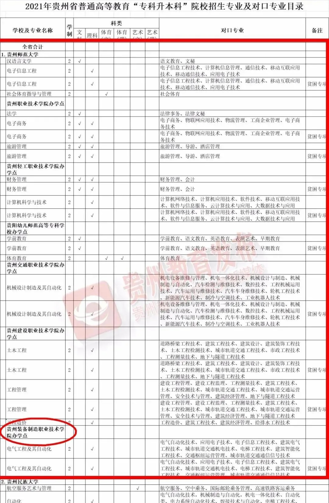 日前,贵州省教育厅办公室公布了《2021年贵州省普通高等教育“专科升本科”院校招生专业及对口专业目录》。我院被确定为开展专升本联合培养院校。