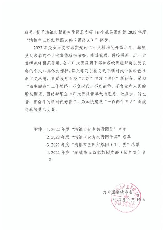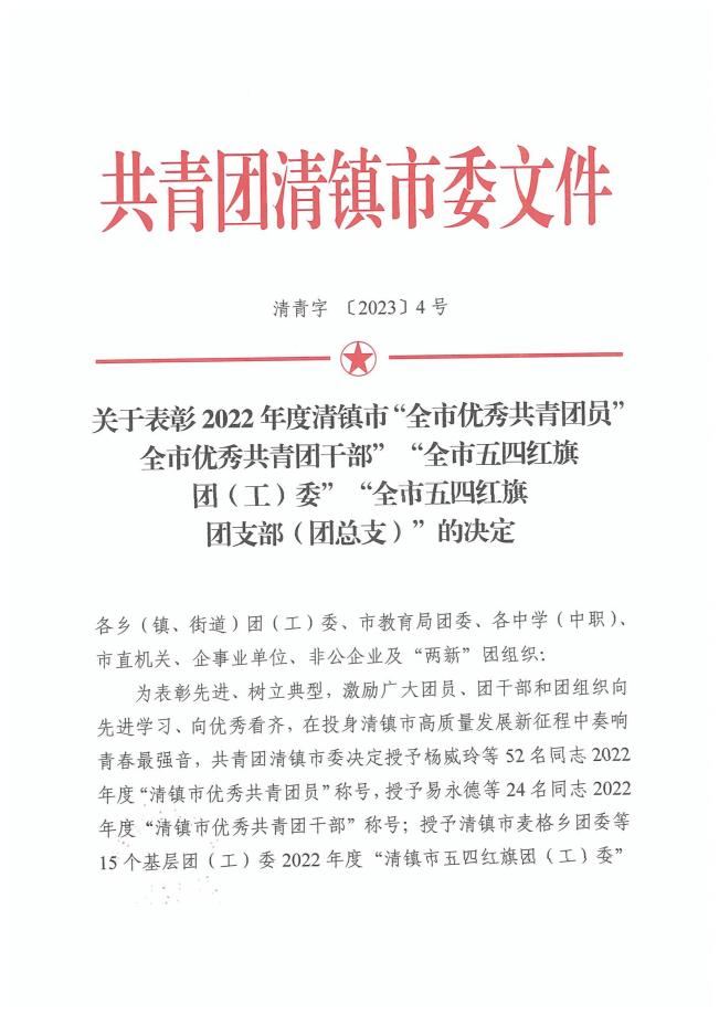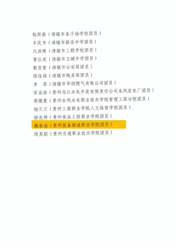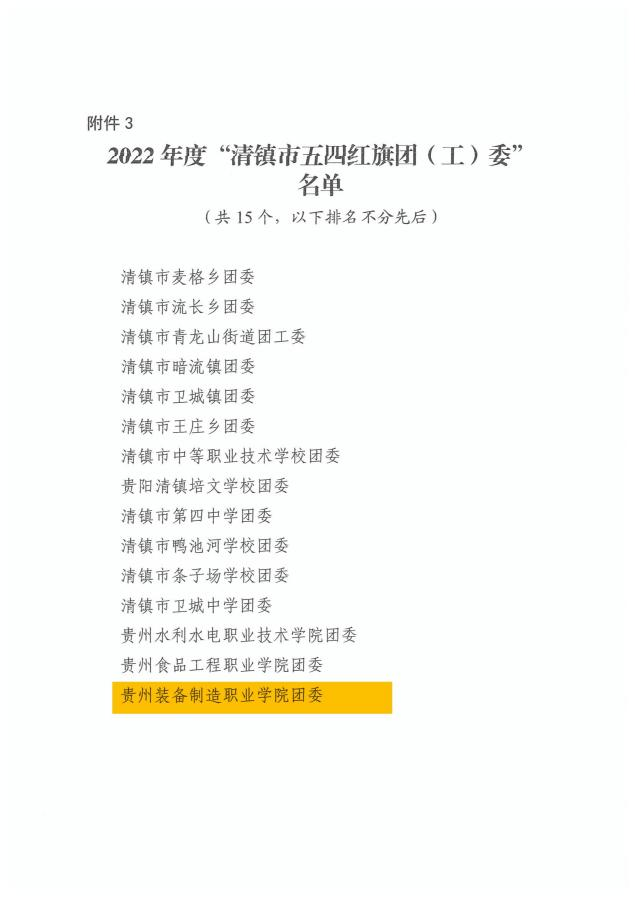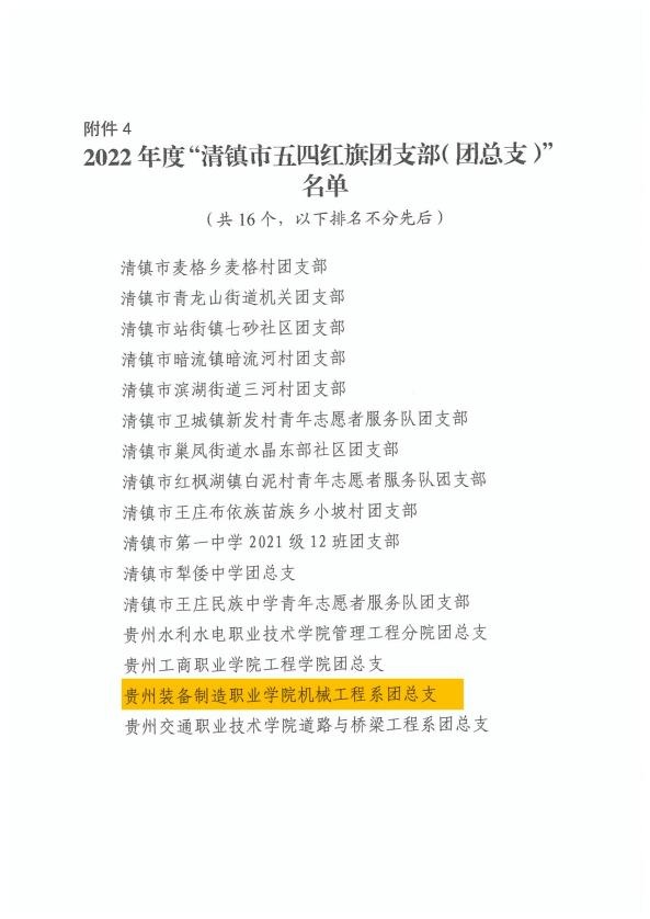 近期,在共青团清镇市委开展的清镇市2022年度“优秀团员”“优秀共青团干部”“五四红旗团(工)委”“五四红旗团支部(团总支)”评选表彰工作中,我院机械工程系魏春迪同学荣获2022年度清镇市“优秀团员”称号,机械工程系团总支书记彭敏老师荣获2022年度清镇市“优秀共青团干部”称号,校团委荣获2022年度清镇市“五四红旗团(工)委”称号,机械工程系团总支荣获2022年度清镇市“五四红旗团支部(团总支)”称号。