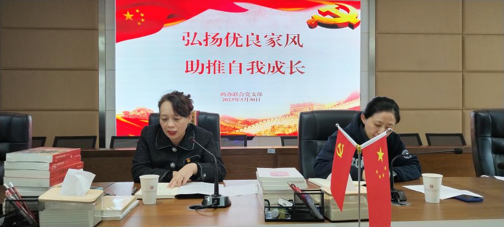 家是最小国,国是千万家。习近平总书记多次在讲话中谈到“要推动全社会注重家庭家教家风建设”,为进一步强化支部党员领导干部家庭家教家风建设,引导支部广大党员及群众弘扬优良家风,妥善处理工作和家庭之间的关系,用好的家风培育好的作风,2023年3月30日上午,机关党总支两办联合党支部全体党员和群众在培训中心二楼会议室开展了“弘扬优良家风,助推自我成长”为主题的主题党日活动,并邀请学院党委书记熊星以“弘扬优良家风,助推自我成长”为题为大家上了一堂精彩的家风教育课。