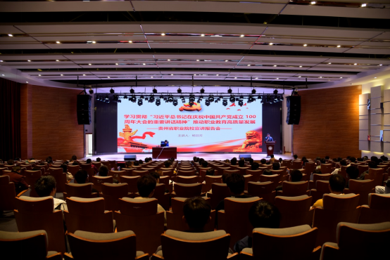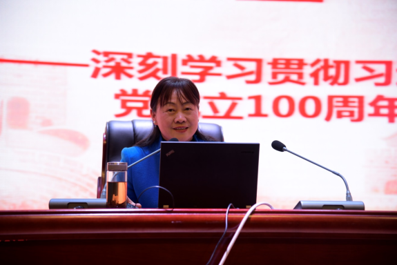 为贯彻落实省委教育工委、省教育厅关于开展学习贯彻习近平总书记“七一”重要讲话精神专题宣讲的有关工作部署,扎实推进党史学习教育走深走实,10月27日下午,我院组织开展贵州省职业院校宣讲报告会。学院党委副书记、省高职宣讲团成员杨丽芳同志在德润楼101报告厅以“以史为鉴、开创未来 学习贯彻‘习近平总书记在庆祝中国共产党成立100周年大会的重要讲话精神’ 推动职业教育高质量发展”为主题作专题宣讲。学院各部门、各系部教师代表及学生代表近200人共同聆听了此次宣讲报告。会议由学院党委委员、宣传统战部部长蒋永彪同志主持。