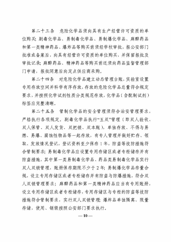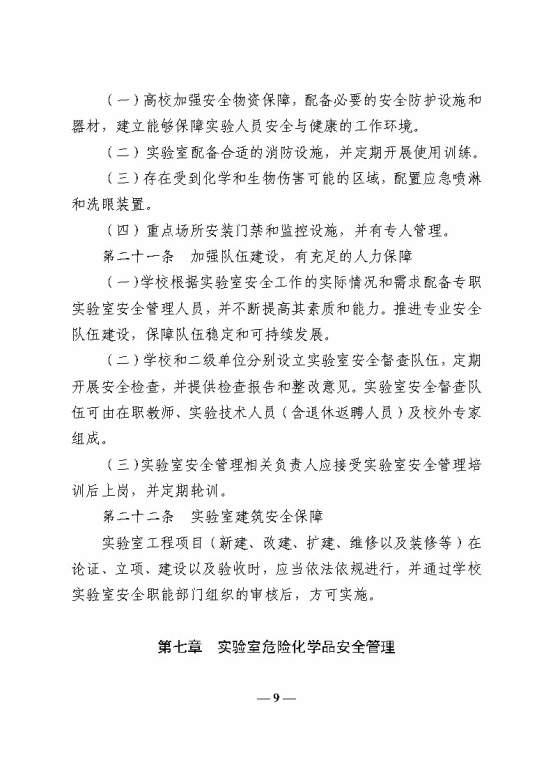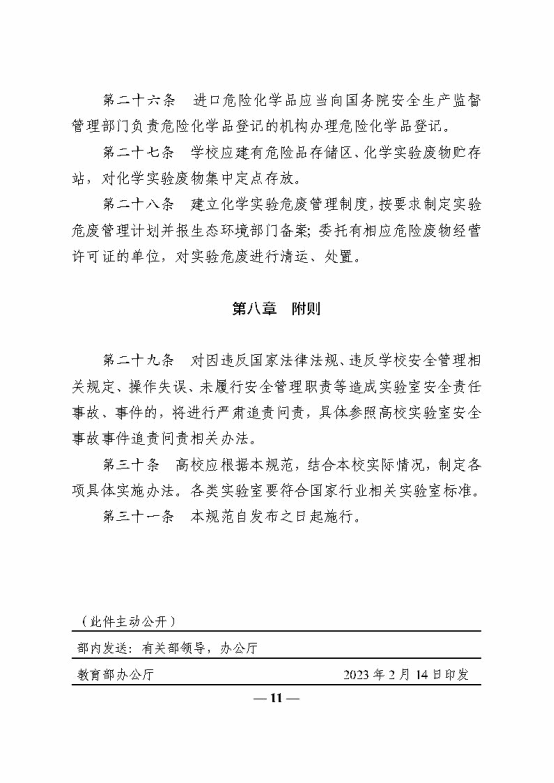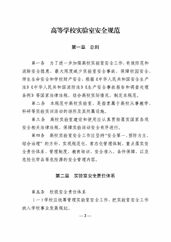 教育部办公厅关于印发《高等学校实验室安全规范》的通知