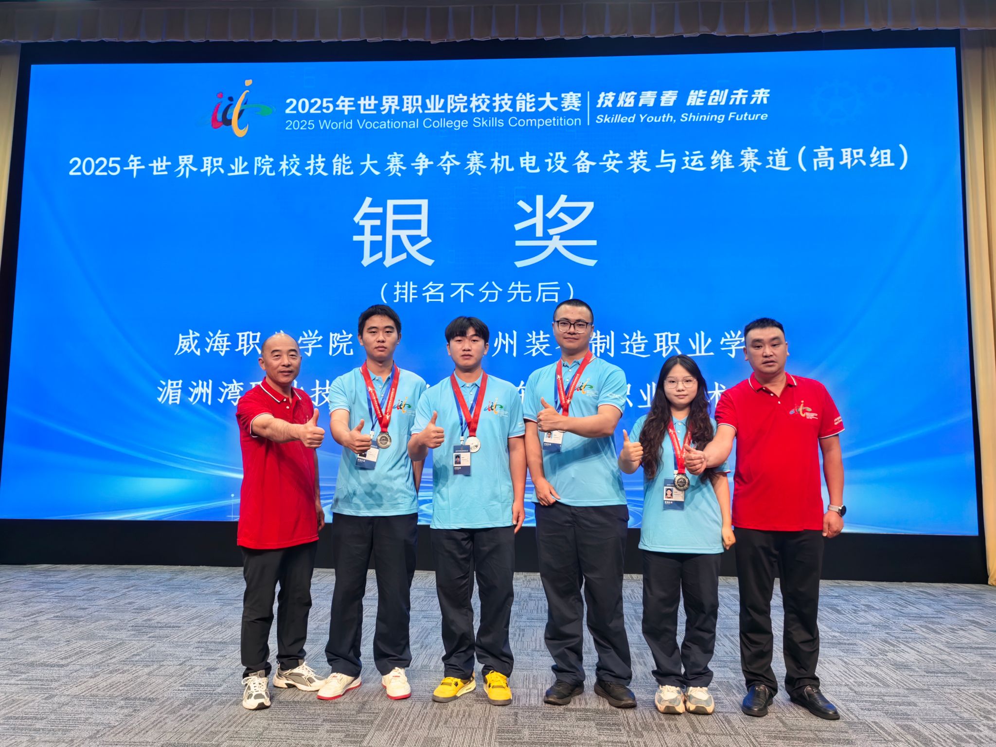 近日,在教育部主办的2025年世界职业院校技能大赛中,通过指导教师与参赛选手的刻苦训练、认真备赛,beat365电气工程系代表队斩获银奖2项的好成绩。