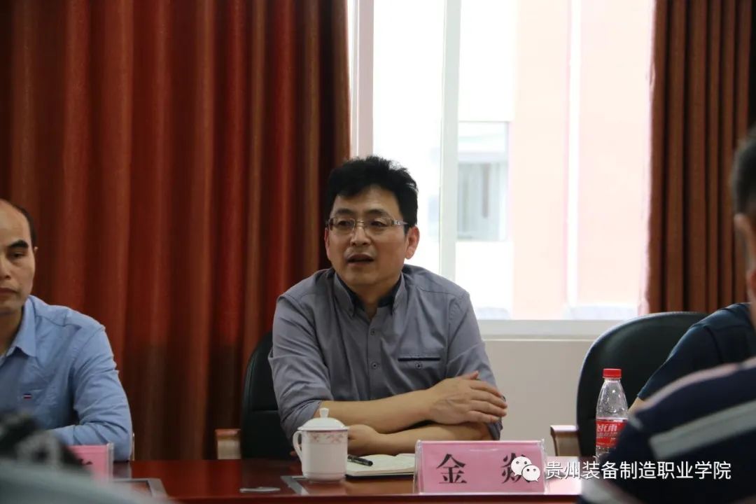 参观结束后,金焱院长一行与台江职校党支部书记、校长黄健光,常务副校长熊金江,副校长王家友,校长助理、招生就办主任刘小芳,现代装备制造专业部部长熊敬彪,现代装备制造专业部教师黄再霖等老师开展了交流座谈,听取了台江职校在组团式帮扶下取得的成就和总结的经验做法,双方就民族地区职业教育发展特点及路径等问题进行了深入交流,并就双方开展中高职贯通培养所面临的人才培养方案修订等问题进行了深入探讨。
