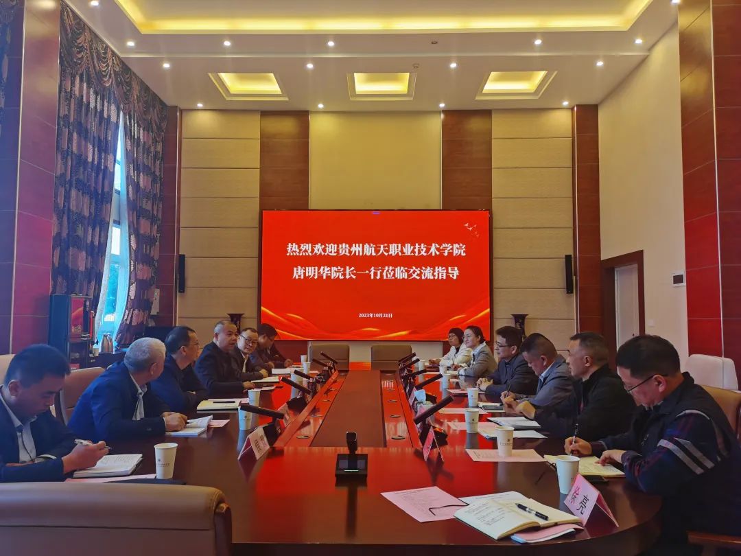 10月31日,贵州航天职业技术学院党委副书记、院长唐明华带队,党委委员、副院长张亚军,副院长冯伟,党政办主任陈亮、计算机科学系主任杨先立、教务处副处长侯毅、机械工程系副主任先世兵一行到beat365考察交流。beat365党委副书记、院长金焱,党委委员、副院长张克峰,机械工程系、电气工程系、教务处、规划处等部门人员参加座谈。