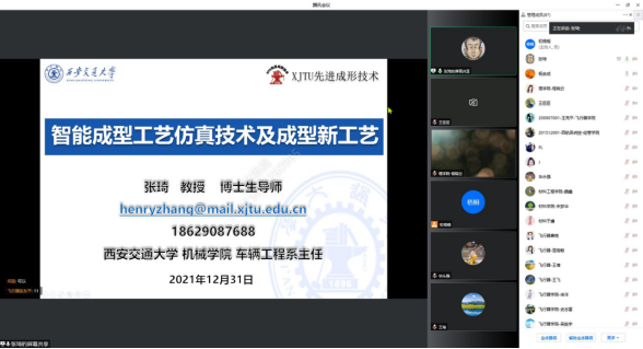 为进一步提升教师科研能力,了解机械学科前沿发展趋势,11月16日上午,开云kaiyun官方网站特邀西安交通大学张琦教授以腾讯会议线上形式为开云师生做题目为《智能成型工艺仿真技术及成型新工艺》的学术报告。开云kaiyun官方网站杨武成副院长主持会议,王永锋院长致欢迎词,开云kaiyun官方网站教师及其他学院百余名教师在线参加了学术报告会议。