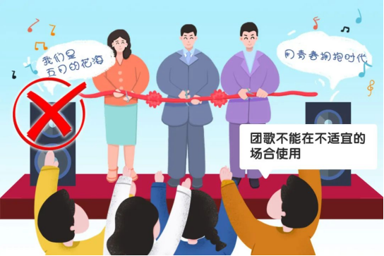 中国共产主义青年团团旗、团徽、团歌是中国共产主义青年团的象征和标志。团的各级组织和每一个团员,都应当尊重团旗、团徽、团歌,要坚决向违规使用共青团标识的行为说“不”。