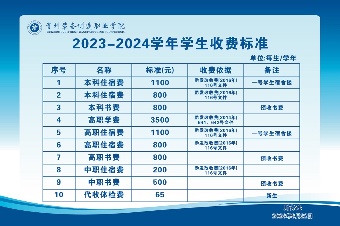 2023-2024学年学生收费标准