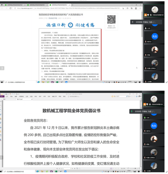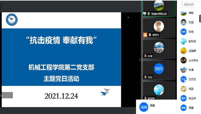 为有效控制和降低疫情传播风险,群防群治,共克时艰,开云kaiyun官方网站各党支部为动员支部全体党员在关键时刻要发挥示范引领作用,把学史力行真正做到实处,落实在防疫的各个方面,于12月25日分别举行线上“抗击疫情,奉献有我”主题党日活动。