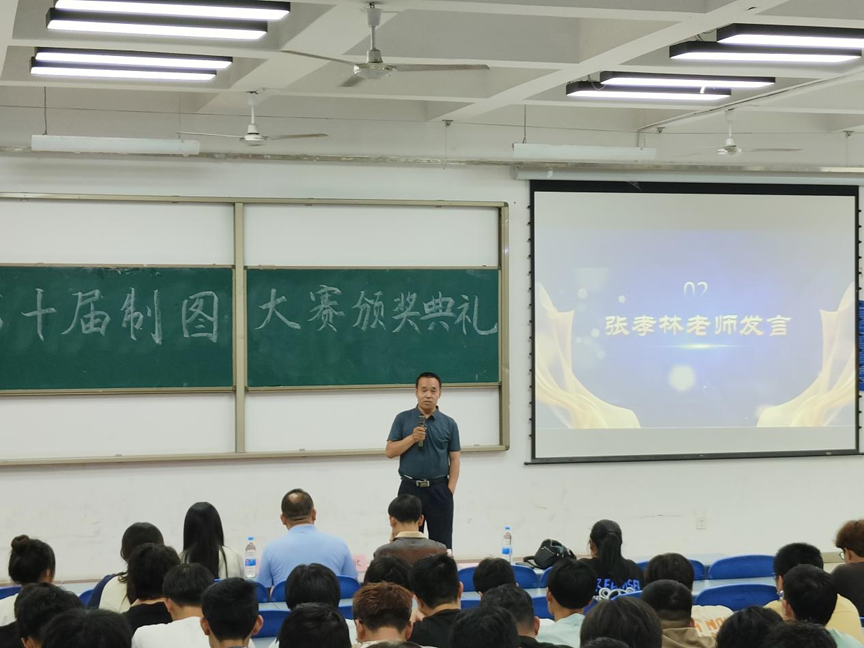 活动首先进行了优秀制图作品展示。评委张孝林老师对参赛作品进行了认真细致地点评,肯定了同学们的努力和成果,也对存在的问题进行了总结,给同学们提供了一些学习建议,对同学们提出了殷切希望。