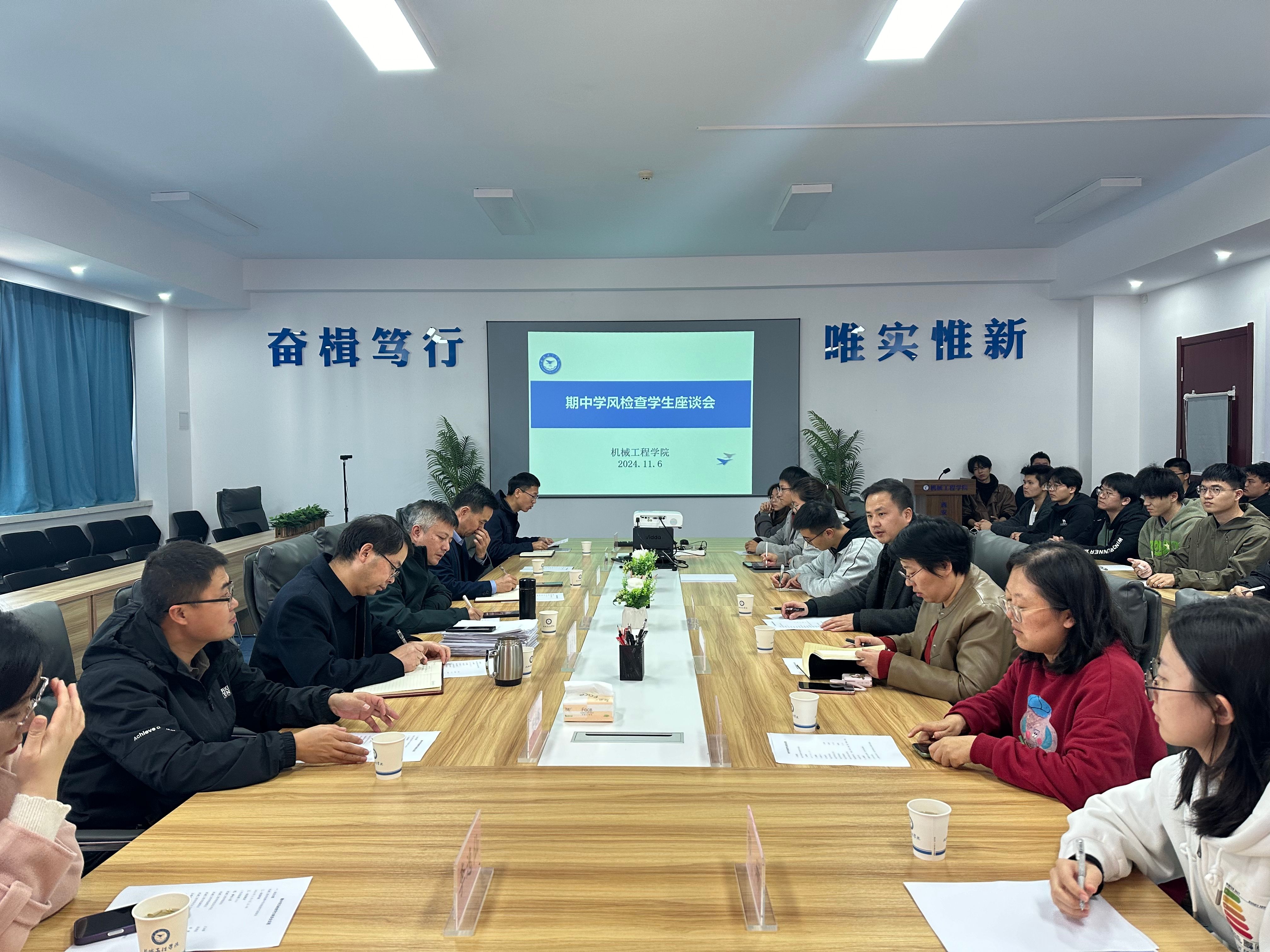 我院于2024年11月6日在三号实验楼3314会议室召开2024-2025-1学期期中学风检查学生座谈会。开云kaiyun官方网站院长王永锋,党总支书记孙茉莉,副院长李懿、杨武成,各教研室教师代表及各年级学生代表参加会议,党总支副书记刘欣主持。