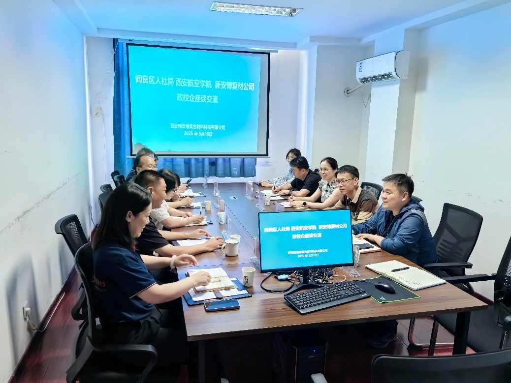 新安博公司总经理周晓锋、人资部门负责人杜宁、生产部门负责人王健等对刘欣一行进行了热情接待。阎良区人社局赵荣书记、张伟主任、卢建波书记等共同出席座谈会。