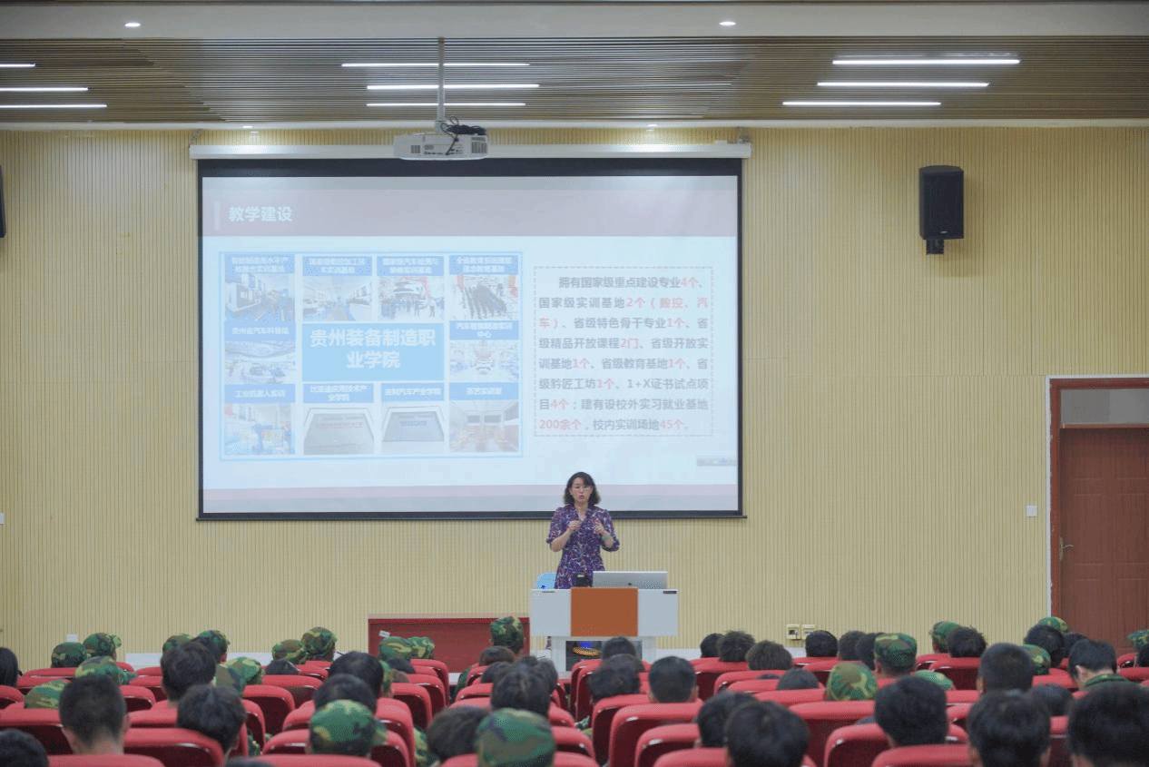 李秀丽副院长首先回顾了学院的发展历程,从1981年的贵州省机械电子工业厅干部学校,到2017年升格为beat365在线体育官网登录入口,再到2022年入选省级高水平高职学校和专业群建设计划。她特别提到习近平总书记2015年视察学院时的重要指示,强调职业教育的重要性,并分享了学院的“校风、教风、学风”精神及校训。