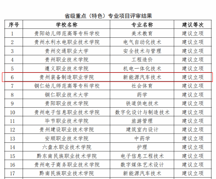 近日,贵州省教育厅公布2025下半年贵州省职业教育有关项目评审结果,继上半年“技能贵州”行动计划2个项目成功立项后,省级专业教学资源库、省级一流核心课程、省级重点(特色)专业、省级示范性人才培养方案4个项目喜获立项。截止目前,我院在“技能贵州”行动计划中累计立项项目32项。项目成功立项与建设,不仅是学院持续推进教师队伍建设的创新成果,也是对学院人才培养和教育教学改革成果的检阅和展示。