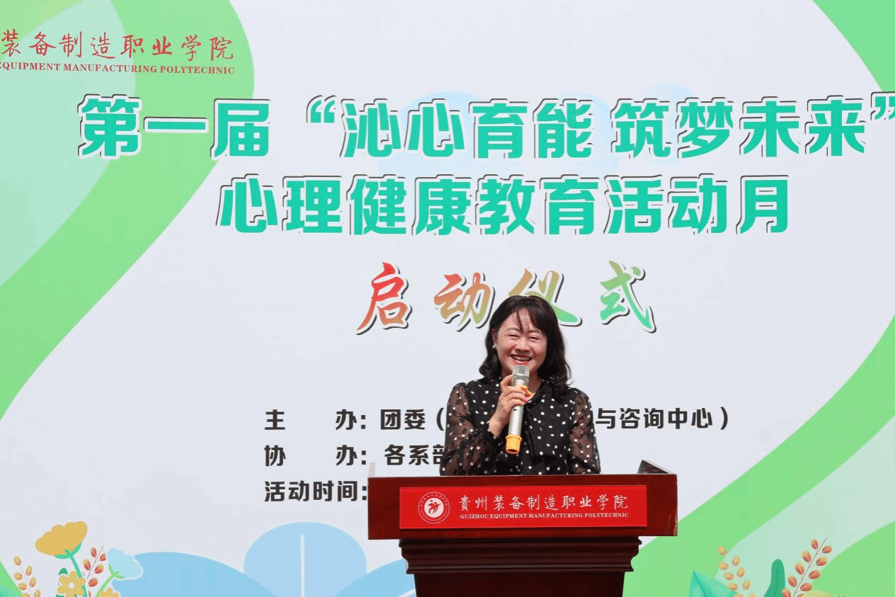 启动仪式上,党委副书记杨丽芳为本次活动致辞。她首先代表学院党委向为活动筹备付出辛勤努力的老师们表示衷心感谢,并向参与活动的每一位同学表示热烈欢迎。杨书记指出,本届活动月以“沁心育能 筑梦未来”为主题,精心策划了心理游园会、传统文化疗愈体验、健康委员培训等系列内容,旨在让心理健康教育“活起来、暖起来、实起来”,帮助同学们在参与中舒缓情绪、提升心理韧性。她对参与本次活动的同学们提出三点期望:一是积极关注自我,做自身心理健康的第一关爱人;二是主动投入活动,在体验中学习成长;三是互相关心支持,做彼此心灵的温暖守护者,共同营造理解、包容、友爱的校园氛围。她表示,相信在全体师生的共同努力下,本次活动月必将取得圆满成功。