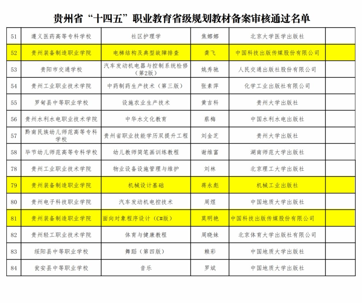 贵州省“十四五”职业教育省级规划立项建设教材验收评审通过名单