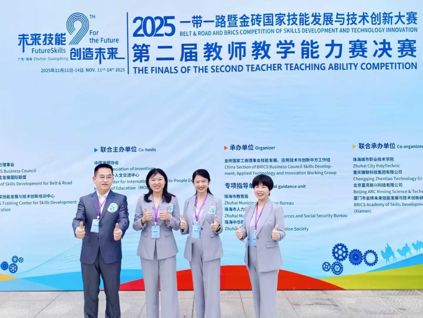 11月14日,2025“一带一路”暨金砖国家技能发展与技术创新大赛第二届教师教学能力赛全国决赛在广东珠海顺利闭幕。beat365派出公共基础课和专业课两支教师代表队参赛,荣获全国总决赛铜奖2项。