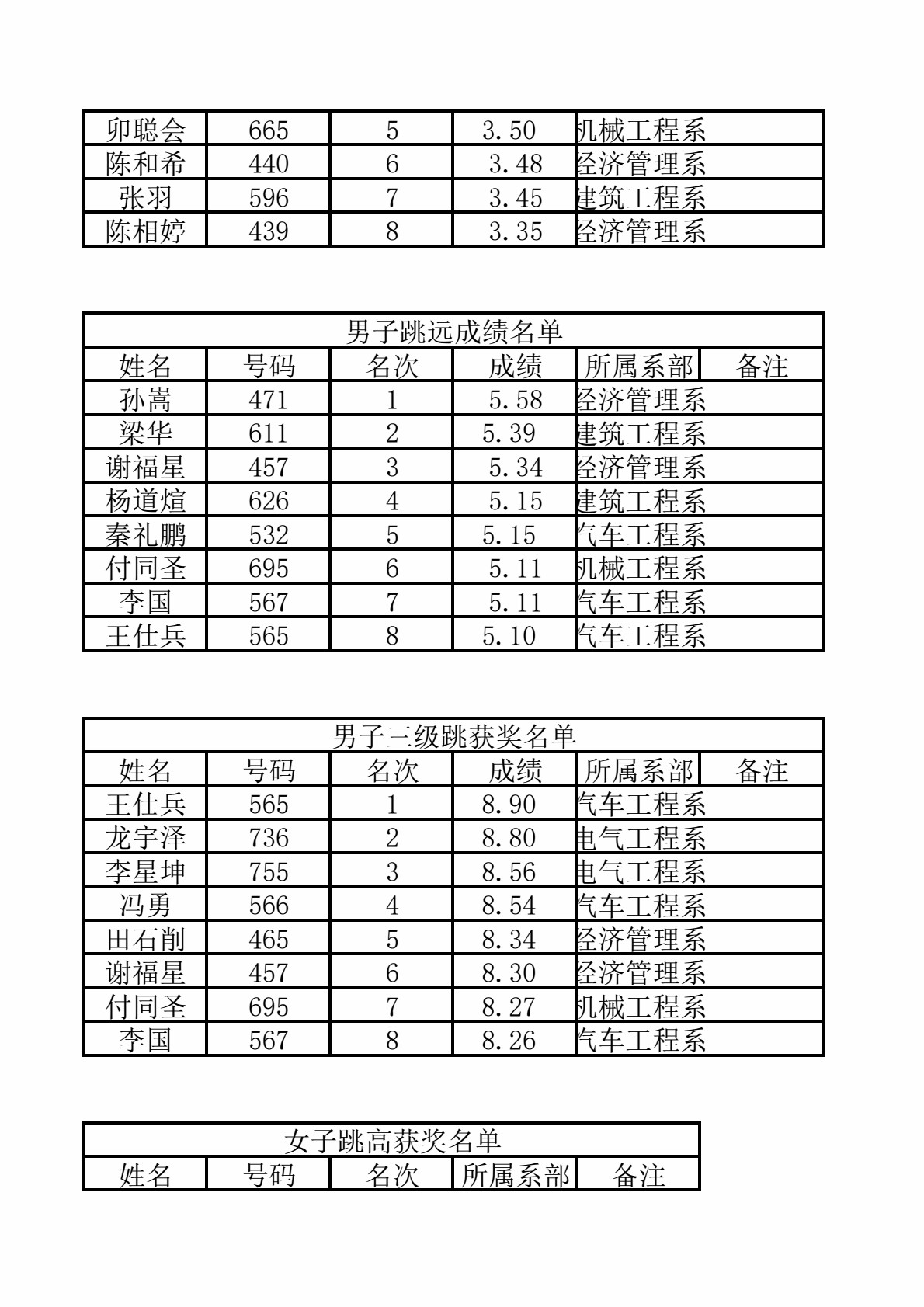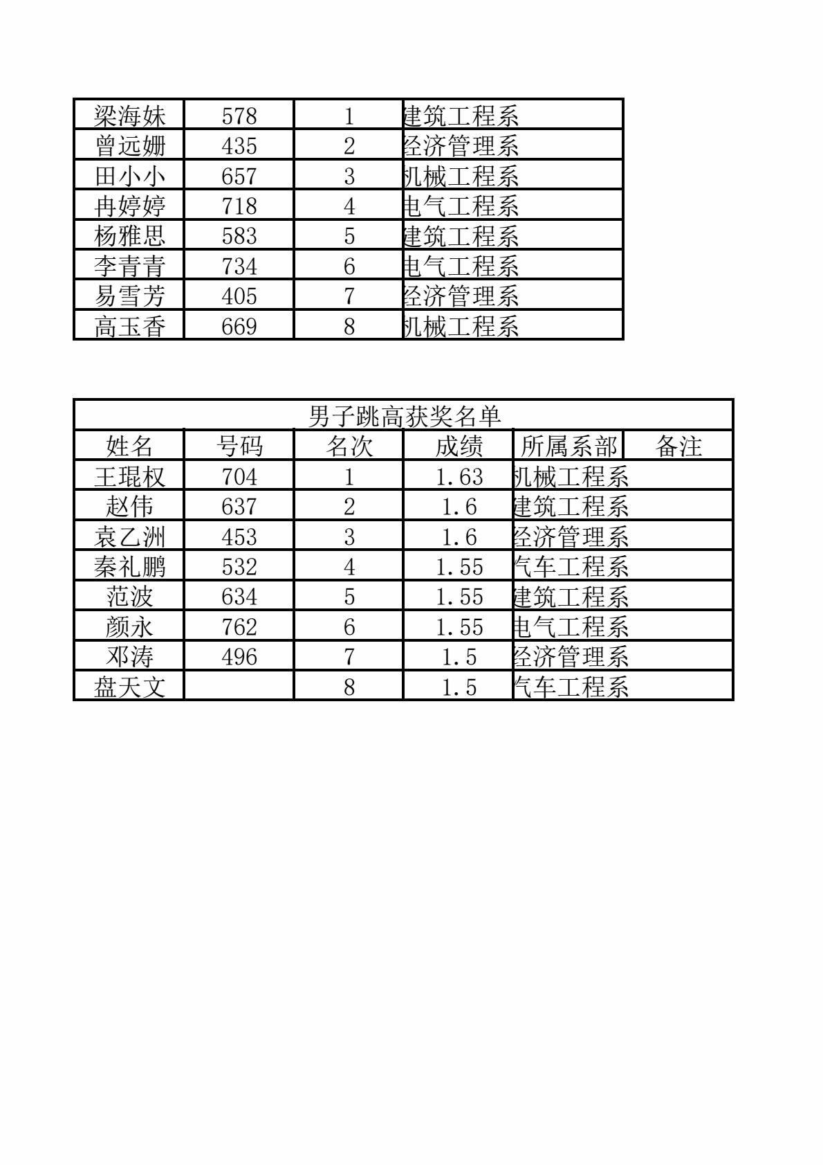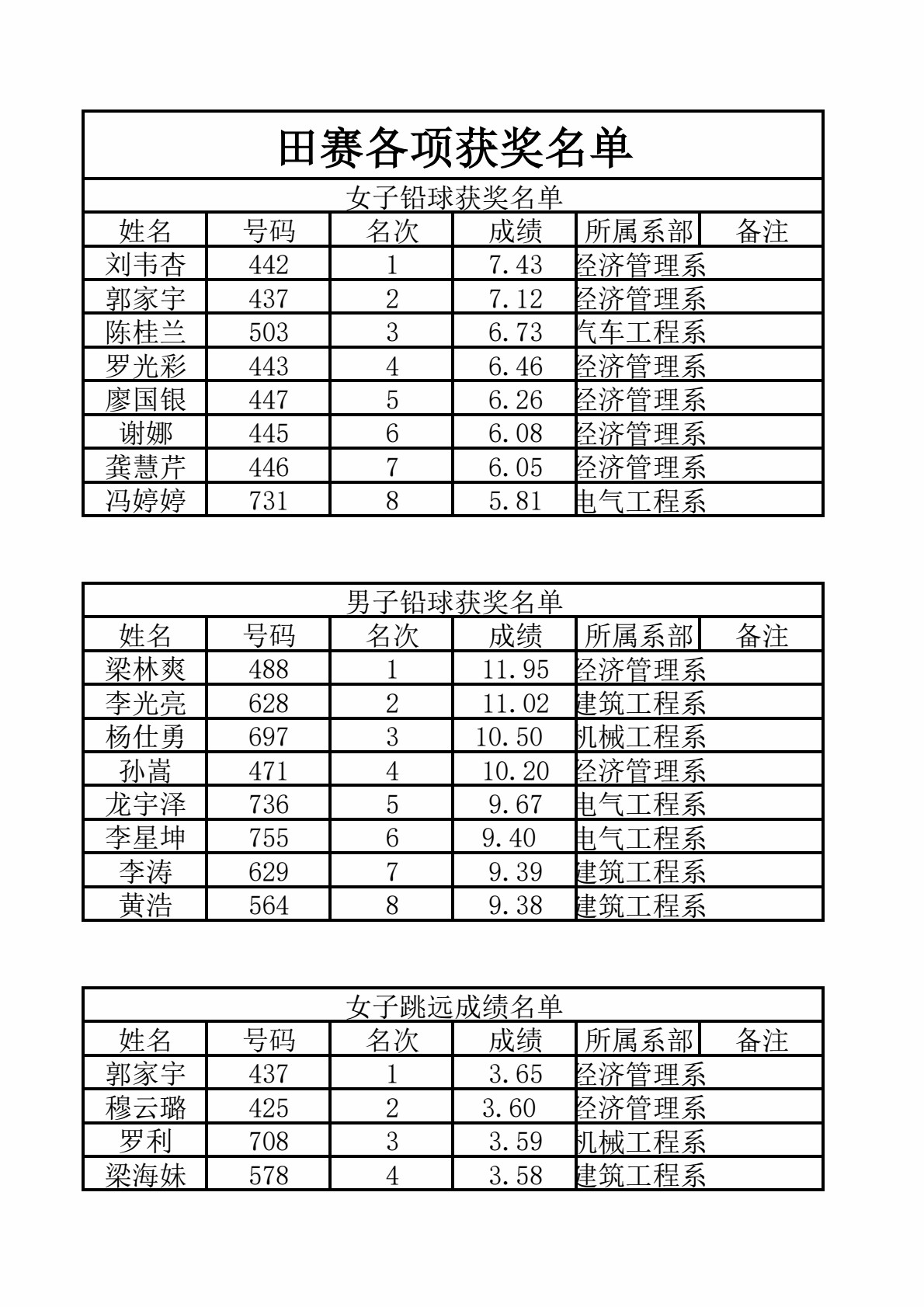 在2023年5月11日-12日,我院举办了以“强健体魄 培根铸魂”为主题的院第四届田径运动会。经过学生两天的激烈比拼,总积分排名前三的系部为经济管理系、电气工程系、机械工程系,产生新纪录两项,破纪录三项次。