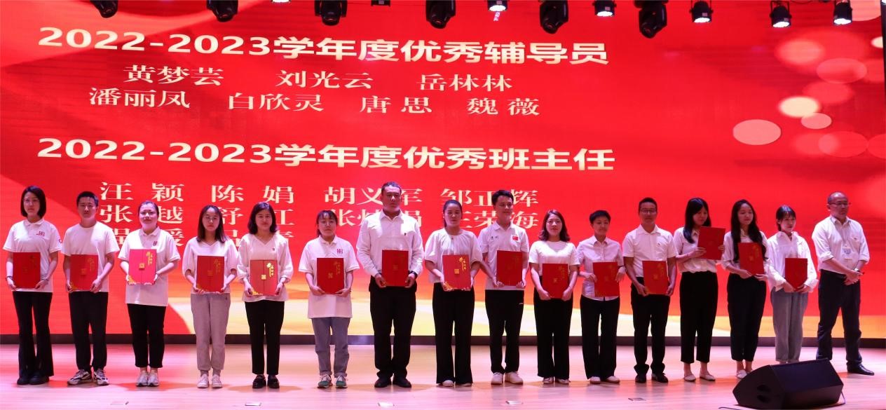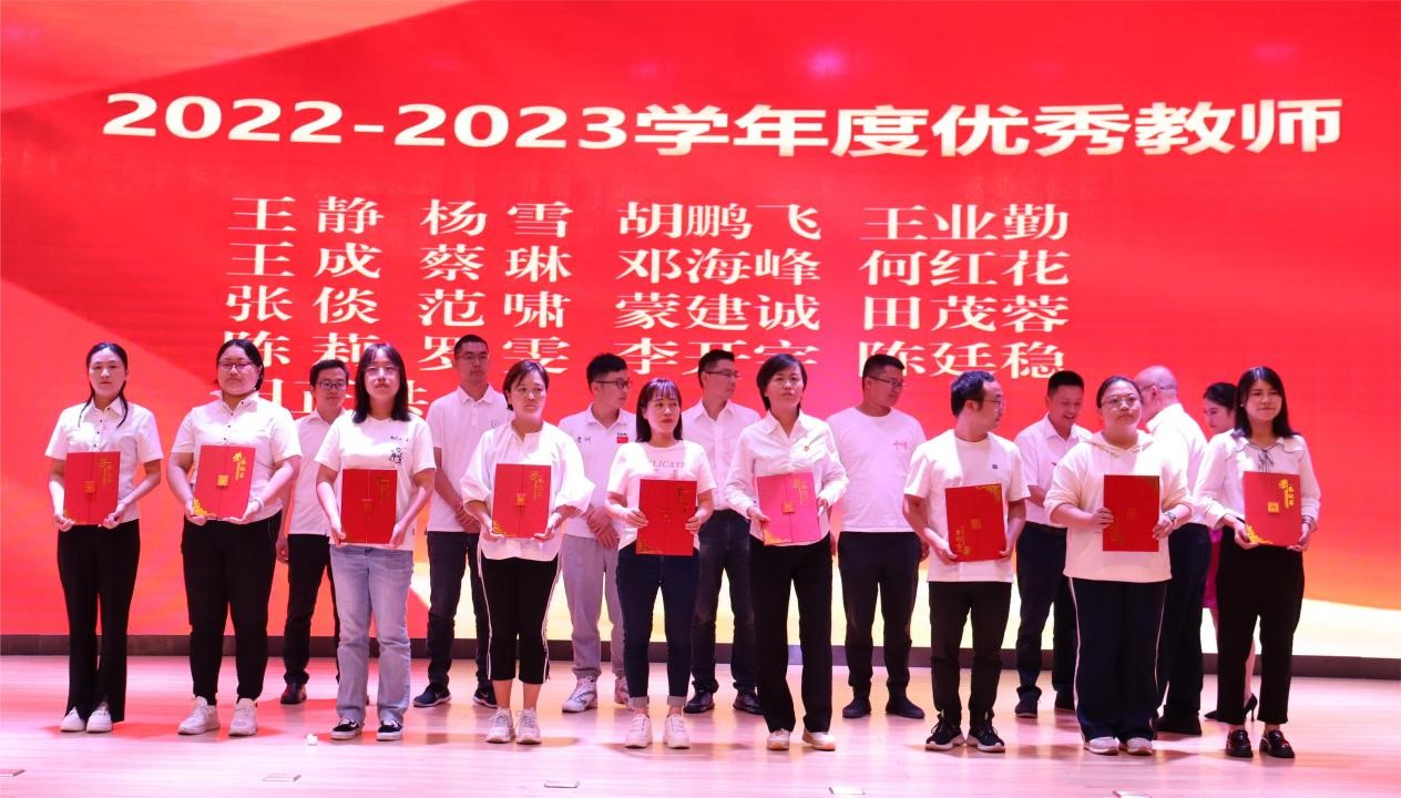在表彰环节,党委副书记杨丽芳同志宣读了《beat365在线体育官网登录入口关于表彰2022-2023学年度优秀教师、教育工作先进个人、优秀辅导员、优秀班主任的决定》《beat365在线体育官网登录入口关于表彰2022年度“两优一先”和“身边榜样”的决定》;团委副书记孙文同志宣读了30年教龄教师名单、2022年目标绩效考核“突出贡献奖”名单、大思政课工作“突出贡献奖”名单,大会对学院131名教师进行现场表彰,与会领导为获得表彰的教师颁发优秀证书。