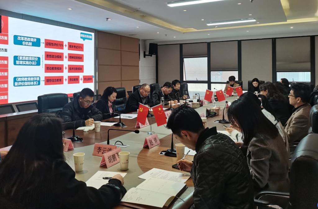 汇报会上,党委书记熊星从组织管理、教学管理、队伍管理、学生发展等方面对学校开展习近平新时代中国特色社会主义思想进课堂相关情况进行了汇报。