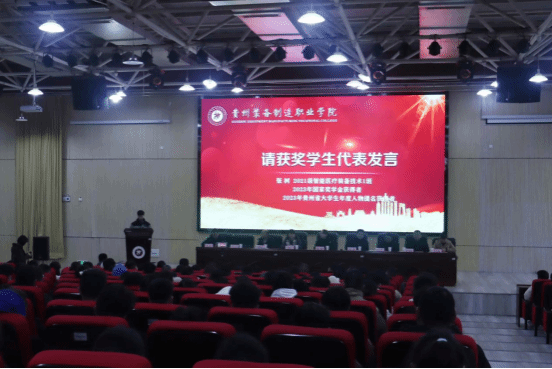 2023年国家奖学金、贵州省大学生年度人物提名获得者、2021级智能医疗装备技术1班张树同学代表受表彰的同学发言。张树同学从学业和实践方面分享了自己在大学期间成长“秘笈”。他说:“要想成为一名对社会有用且合格的复合型人才,一定要有理想目标,并为之而付诸行动,要有不怕苦、不怕累,肯下苦功夫的精神。作为新时代青年学子,我们要在党的旗帜下,增强做中国人的志气、骨气和底气,自觉把青春奋斗融入党和人民事业中,在多彩贵州现代化建设新征程中放飞青春梦想、实现人生出彩。”