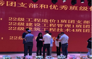 系党总支书记朱贤广、系主任刘洋等,为建筑工程系2023年度获“优秀团干、优秀班干、团总支优秀干事、团总支优秀干部、优秀学生会干事以及优秀学生会干部”的同学颁奖。