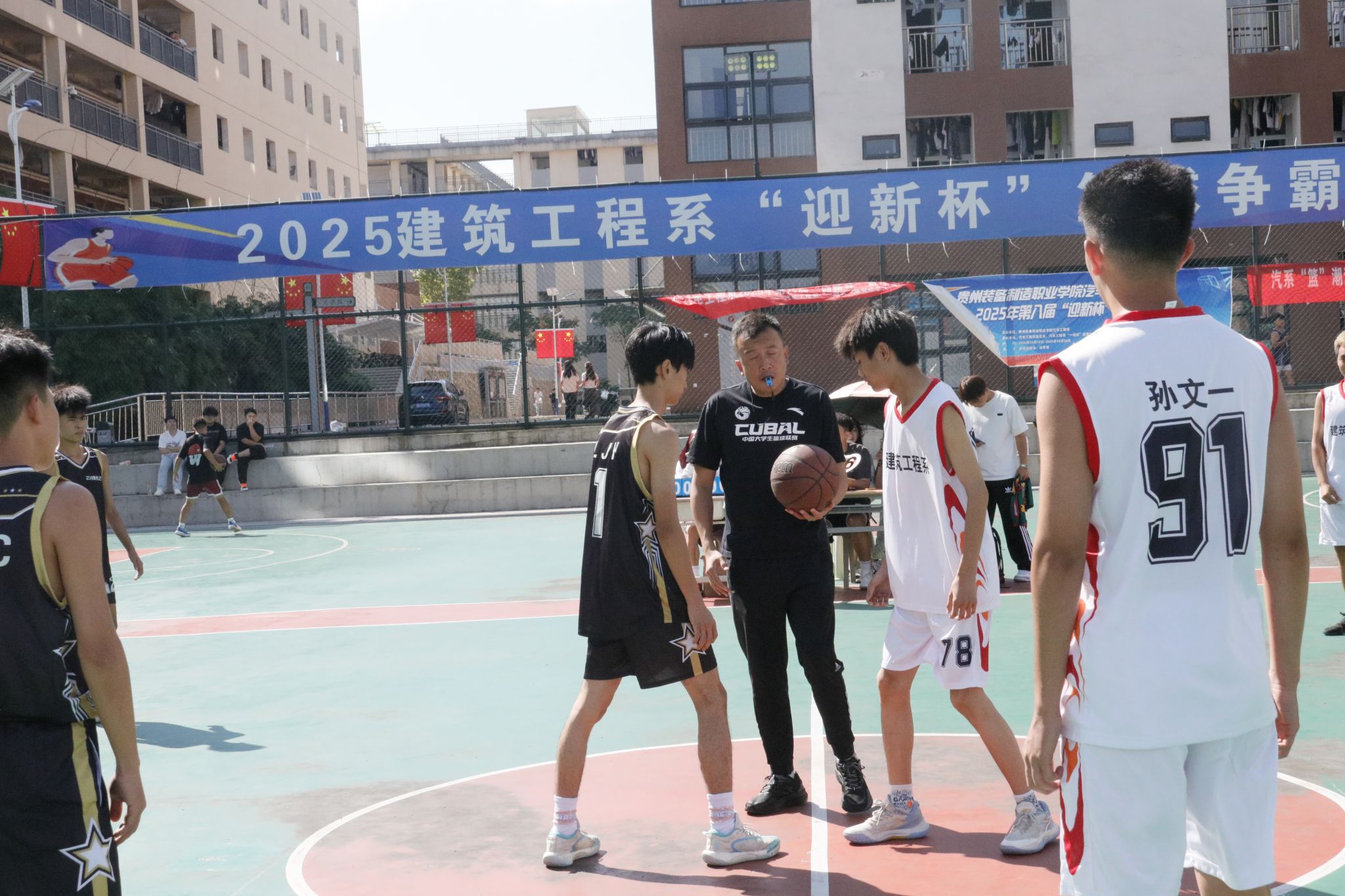 为加强新老生沟通、凝聚班级力量,展现建工学子昂扬风貌,10月11日至21日,建筑工程系师生在学院2号篮球场成功举办2025年“迎新杯”篮球争霸赛开幕仪式。学院党委委员、副院长张克峰、系部党总支书记朱贤广、系主任刘洋、党总支副书记周瑾、系副主任陈龙兴及全体参赛队员、裁判员、师生代表共同参与此次活动。