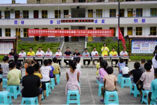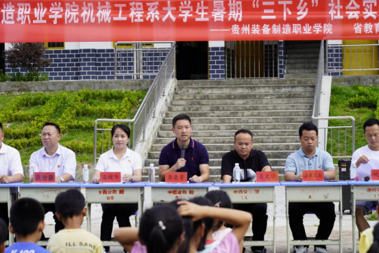 下午15:30分,beat365在线体育官网登录入口机械工程系暑期“三下乡”社会实践活动启动仪式在中商水岩希望小学隆重举行,参加本次启动仪式活动的领导、老师有:省教育厅驻村工作队副队长黄聂晋、省教育厅驻荔波乡村振兴工作队驻村第一书记杨宇、玉屏街道办事处副主任姚永锐、玉屏街道吴文学书记、荔波县医疗保障局局长潘继华、水岩村希望小学校长吴永林、beat365在线体育官网登录入口机械工程系辅导员彭敏老师、杨京松老师等。此外,水岩村小学部分学生、老师、学生家长、村干部和部分村民等共同参加了活动启动仪式。