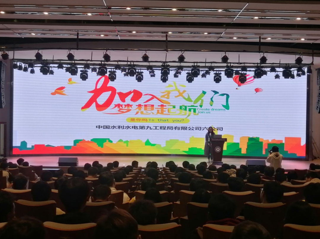 宣讲会上,建筑工程系系主任朱贤广对公司党委书记、总经理严章国一行到学院开展招聘会表示热烈欢迎,并鼓励同学们珍惜机会,踊跃报名投递简历,通过在大企业的工作历练,增长见识、锻炼能力。公司团委书记李莎莎对水电九局六公司企业文化、招聘流程、劳动合同、薪资待遇、工作岗位等进行了详细的宣讲介绍,并对学生关心的问题逐一答疑解惑,宣讲现场座无虚席,全场350余名学生积极参与互动,思考规划职业生涯。