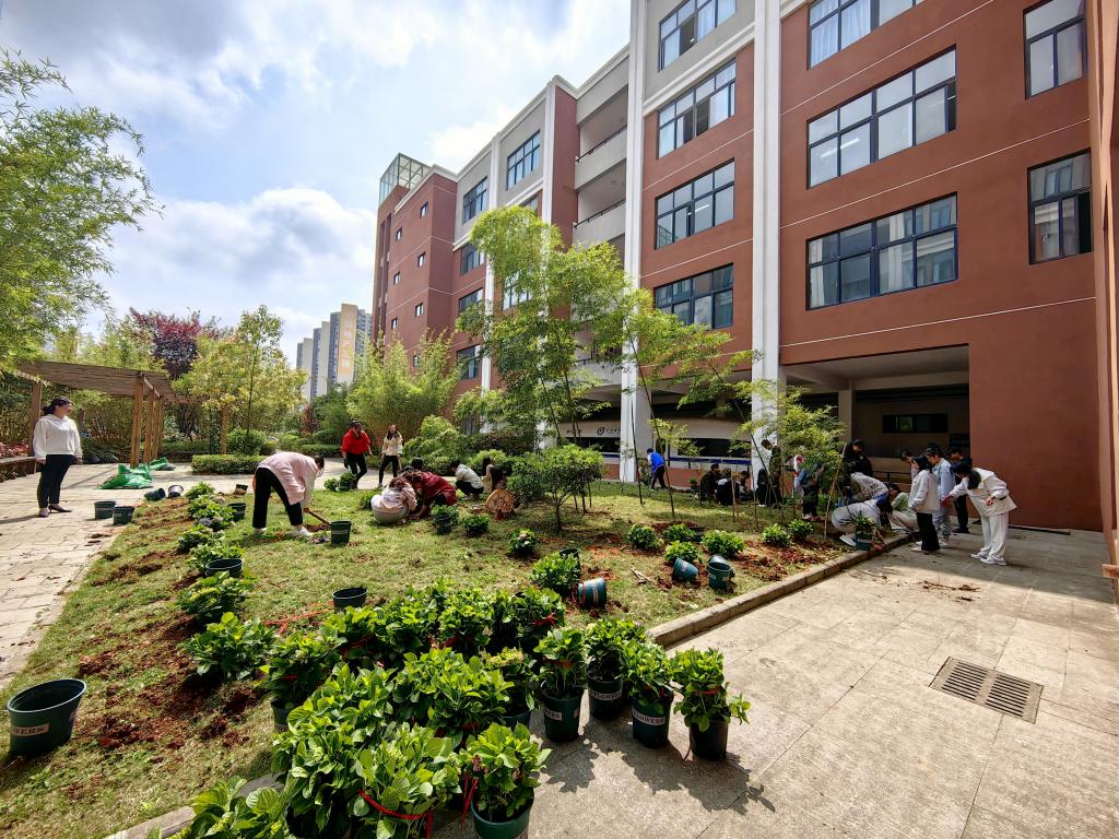 种花不仅是一项劳动,更是寄托一种希望。老师们在这里种下花苗,精心培育,愿将青春岁月化作春泥,培育出更多更优秀的“新花学子”。同学们在这里种下花苗,吸收这片红色的雨露,希望我们在不久的将来,能够茁壮成长,开出人生奋进的绚丽之花。十年树木,百年育人;种花一日,感恩一生;花开一隅,美化无数个心灵。劳动从来都是最美的,我们种下的,将是我们最美的期待。