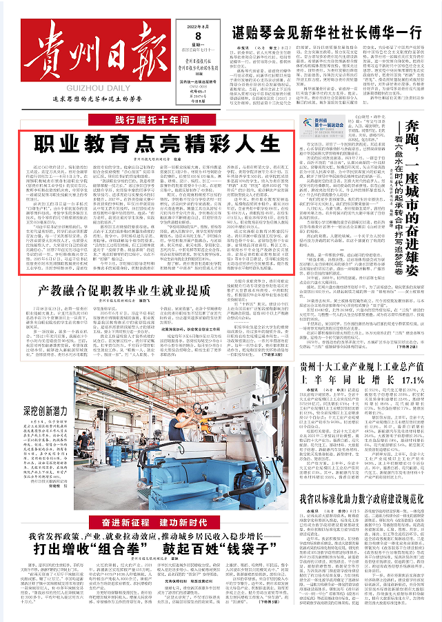 通过实施职业教育兴黔富民行动,贵州开展中职强基工程学校、省级特色骨干专业、省级特色骨干专业群、省级精品开放课程、黔匠工坊、省级高水平专业化产教融合实训基地、省级示范性职业教育集团(联盟)等8个项目建设,引导职业院校主动适应经济社会发展需求,提升教育教学水平和师资队伍质量。