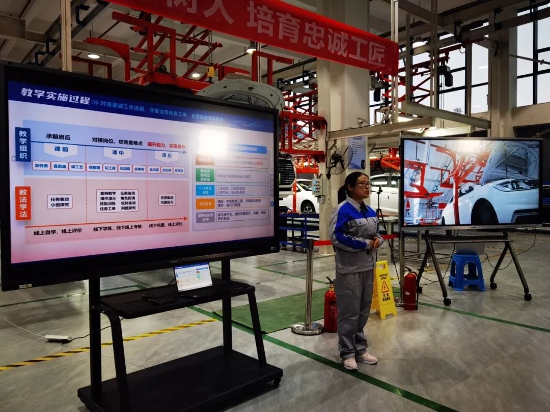 决赛分为教学实施报告讲解、现场教学操作演示、汽车悬架装调仿真和总结答辩四个环节。整个过程在线上通过远程视频系统进行,要求现场全程无死角展示。