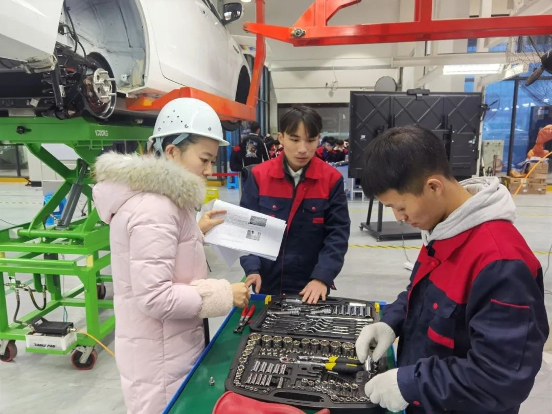 同样有梦的是年轻的女老师潘婷婷。在悬挂的实训车的底盘下,看她把扳手弄得“吱嘎吱嘎”响。我正惊奇时,杨正荣说,潘老师可是汽车专业毕业的研究生哩。