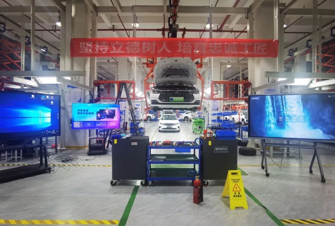 杨正荣:我们这个车间,它就是一个课堂。我们已经升级了AR技术,就是把VR跟厂房连接在一起。你看到的是我们一辆车在焊接,但呈现在我们学生面前的是一个车间,数字化。