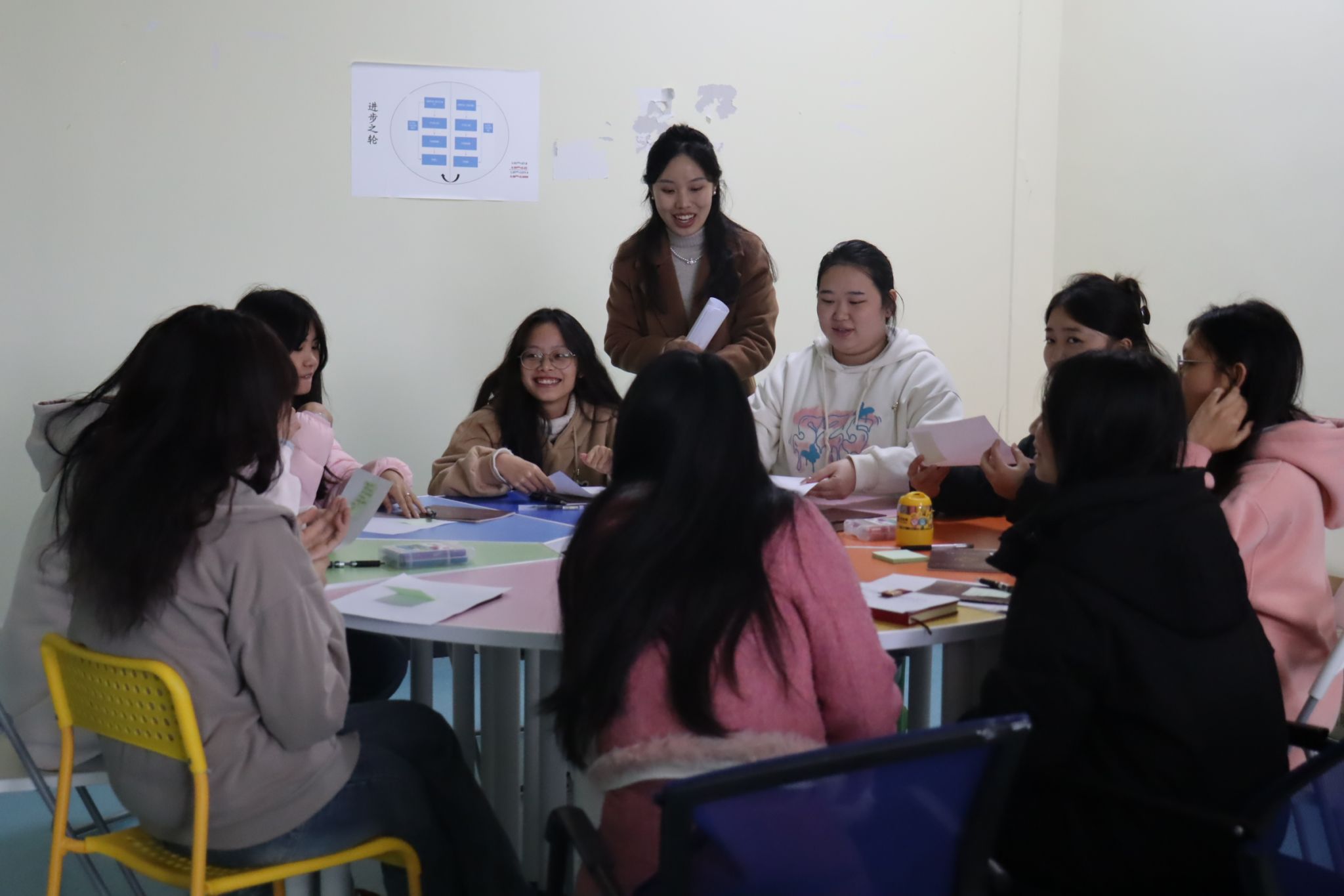 将沙龙推向高潮的是第三个环节——“情景剧场”。黄老师精心设置了三个贴近学生实际生活的情景。同学们踊跃参与,分组进行真实演绎。他们不仅生动地呈现了人际交往中的常见困境,更在黄老师的引导和同伴的启发下,即兴创作出多种充满智慧与善意的解决方案。这种“在做中学”的模式,让抽象的理论知识化为具体可感的行动,极大地激发了学生的参与热情,现场掌声与笑声不断。